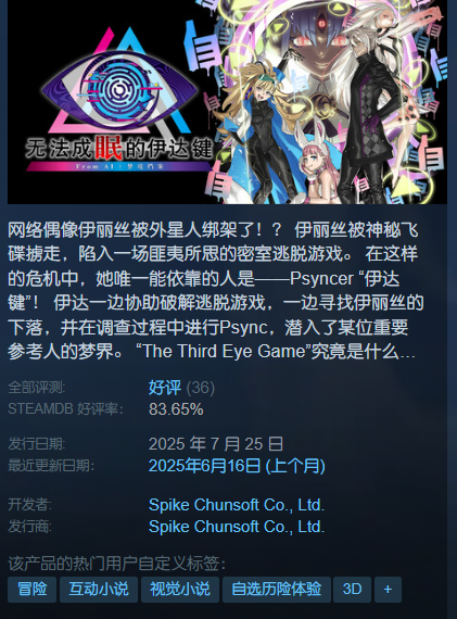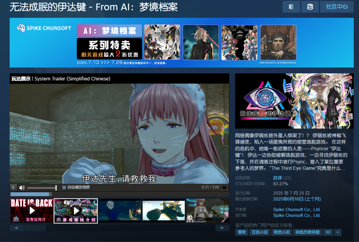 本格冒险推理视觉小说,由打越钢太郎团队倾力之作,是ai梦境档案系列第三部作品